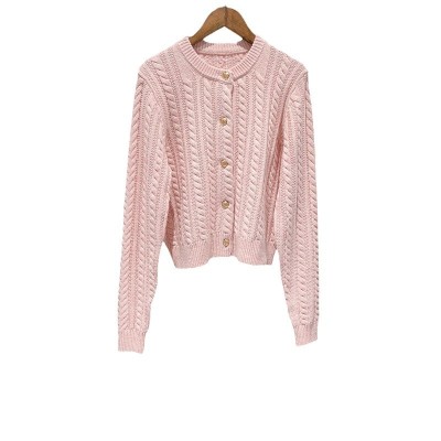 Autumn and winter classic twist white crewneck cardigan vintage metal single-breasted sweater
