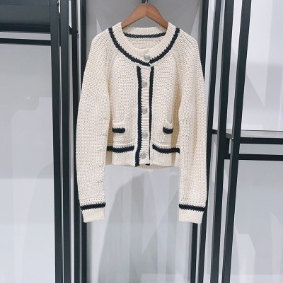Early spring advanced sense round neck color contrast trim single breasted rotator sleeve knit cardigan