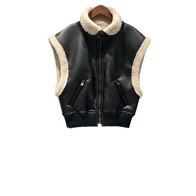 Winter silhouette fur one trim collar loop with sleeveless biker waistcoat for women